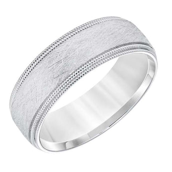 Goldman Men's 7MM Wedding Band with Wire Brushed Finish and Milgrain Edge in 14K White Gold