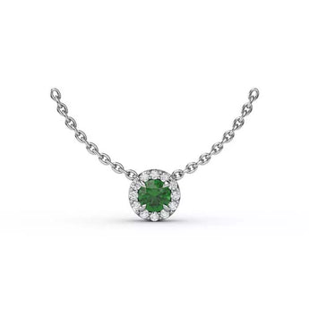 Fana Emerald and Diamond Halo Pendant Necklace in 14K White Gold