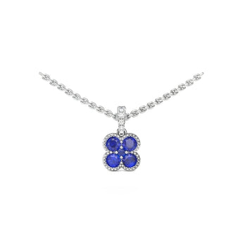 Fana Magnolia Milgrain Sapphire Pendant Necklace in 14K White Gold