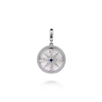 Gabriel & Co. 20mm Bujukan Mother of Pearl and Sapphire Compass Pendant