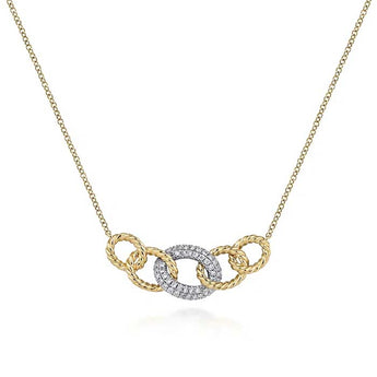 Gabriel & Co. Twisted Rope Link Necklace with Pave Diamond Link Station in Yellow and White Gold