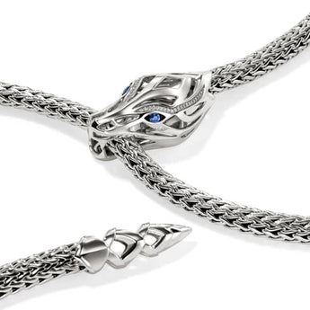 John Hardy Naga Diamond Pavé Lariat Necklace with Blue Sapphires in Sterling Silver