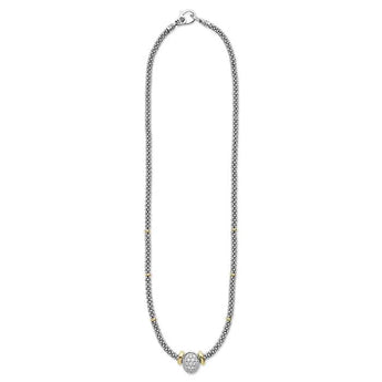 LAGOS 16" Signature Caviar Two-Tone Oval Caviar Diamond Necklace in Sterling Silver and 18K Yellow Gold
