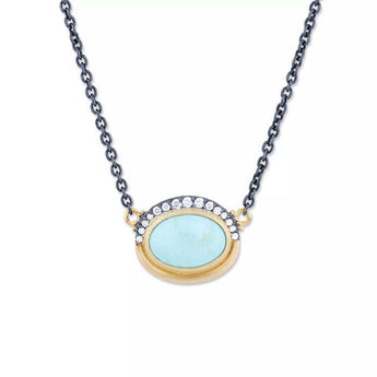 Lika Behar Luna Necklace with Kingman Turquoise and Diamonds in 22K Yellow Gold and Oxidized Sterling Silver