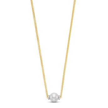 Mastoloni 9-9.5MM Pearl Flanked by Diamond Rondels with Double Chain in 18K Yellow Gold