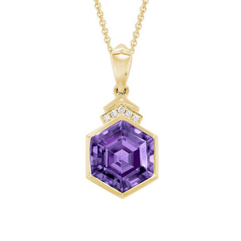 Mountz Collection Amethyst and Diamond Hexagonal Pendant Necklace in 14K Yellow Gold