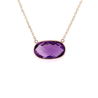 Mountz Collection Amethyst Oval Briolette East/West Pendant in 14K Yellow Gold