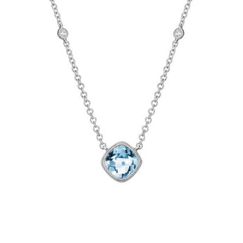 Mountz Collection Aquamarine Pendant Necklace with Diamonds in 14K White Gold