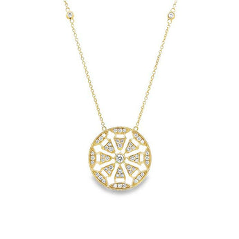 Mountz Collection Diamond Openwork Round Pendant Necklace in 14K Yellow Gold