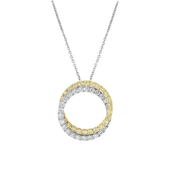 Mountz Collection Intertwined Circles Pendant with Yellow and White Diamonds in 18K White and Yellow Gold