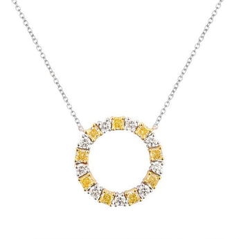 Mountz Collection Open Circle Pendant Necklace with Radiant Yellow and Round White Diamonds in 18K White and Yellow Gold