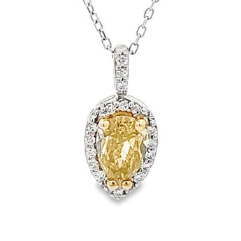 Mountz Collection Sunshine Elegance Upside-Down Pear Shaped Diamond Pendant in 14K White Gold and 18K Yellow Gold