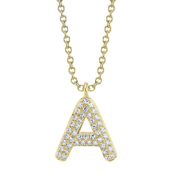 Shy Creation .09CTW Initial "A" Pavé Diamond Pendant in 14K Yellow Gold