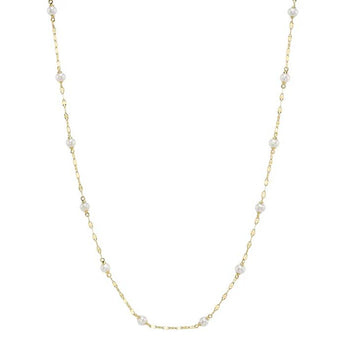 Shy Creation "Jackie Collection" Cultured Pearl Sparkle Chain Necklace in 14K Yellow Gold
