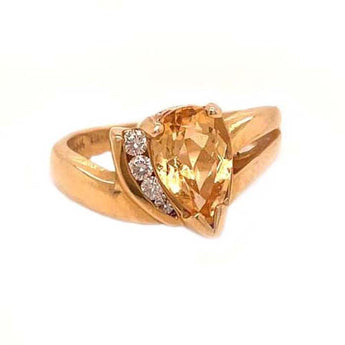 Estate Citrine and Diamond Ring in 14K Yellow Gold