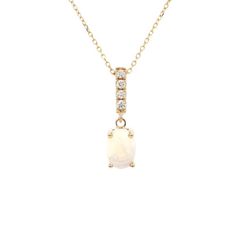 Mountz Collection Oval Opal and Diamond Pendant Necklace in 14K Yellow Gold