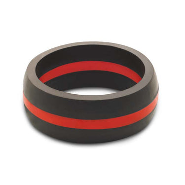 QALO Mens 8.7MM Medical Grade Black with Red Stripe Wedding Band