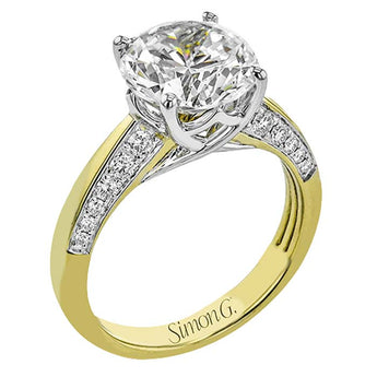 Simon G. 3CT Round Center Engagement Ring Semi-Mounting with Channel Set Diamonds in 18K White and Yellow Gold