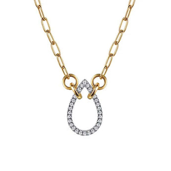 Gabriel & Co. Open Teardrop Diamond Hollow Paperclip Chain Necklace in 14K White and Yellow Gold