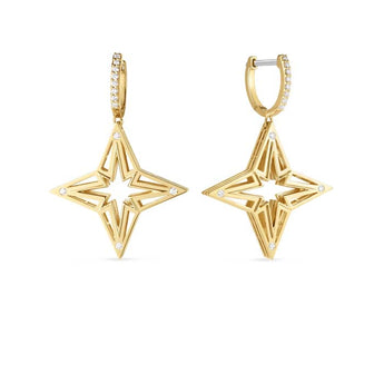Roberto Coin Stardust Open Frame Diamond Star Dangle Earrings in 18K Yellow Gold