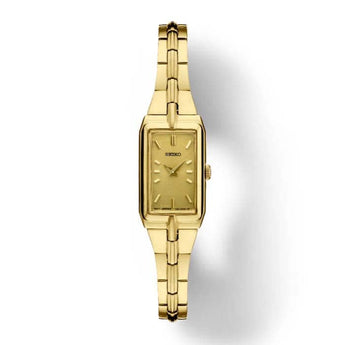 Seiko 15.5MM Champagne Rectangular Dial Watch in Gold-Tone Stainless Steel