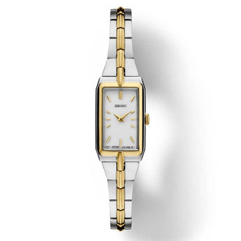 Seiko 15.5MM White Rectangular Dial Watch in Stainless Steel with PVD Gold-Tone