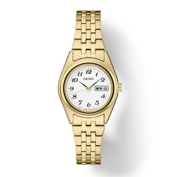 Seiko 25MM Essentials Collection Day/Date Quartz Watch with White Dial in Gold-Tone Stainless Steel