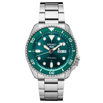 Seiko 42MM Green Dial 5 Sports Watch in Stainless Steel