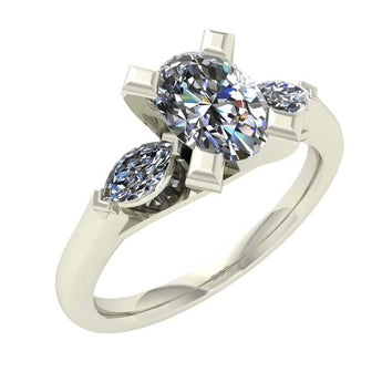 Mountz Collection 3-Stone Engagement Ring Semi-Mounting with Marquise Diamonds in 14K White Gold