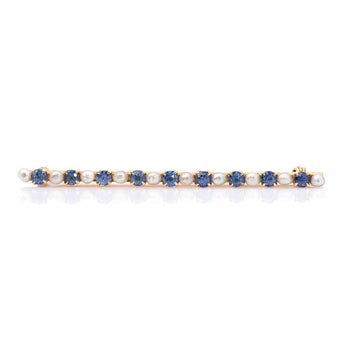 Estate Pearl and Sapphire Bar Pin in 14K Yellow Gold