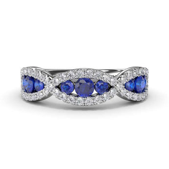 Fana Crossover Sapphire and Diamond Wedding Band in 14K White Gold