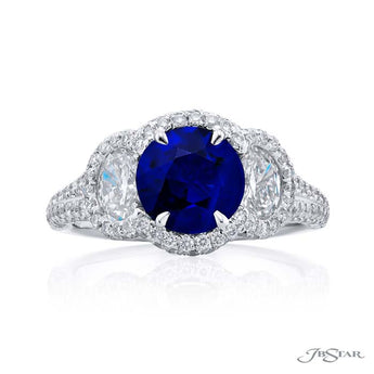 J B Star Sapphire and Oval Diamond Halo Ring in Platinum