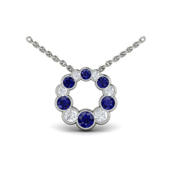 Vlora "Adella Collection" Sapphire and Diamond Circle Bezel Pendant in 14K White Gold