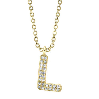 Shy Creation .05CTW Initial "L" Pavé Diamond Pendant in 14K Yellow Gold