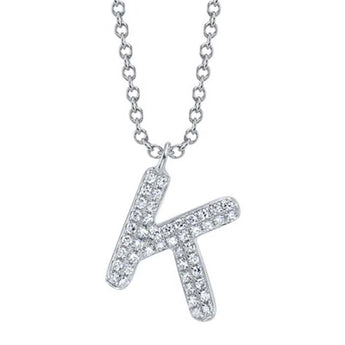 Shy Creation .10CTW Initial "K" Pavé Diamond Pendant in 14K White Gold