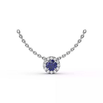 Fana Sapphire and Diamond Halo Pendant Necklace in 14K White Gold