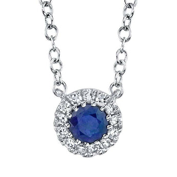 Shy Creation "Eden Collection" Sapphire and Diamond Pendant Necklace in 14K White Gold