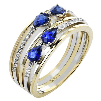 Simon G. Five-Row Sapphire and Diamond Ring in 18K White and Yellow Gold