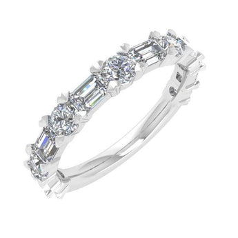 Mountz Collection Emerald Cut and Round Diamond Wedding Band in 14K White Gold
