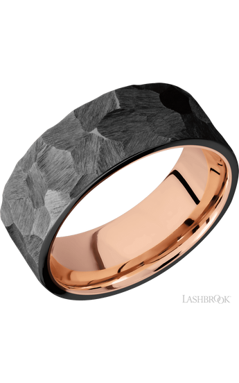 8 mm wide Flat Zirconium band featuring a 14K Rose Gold sleeve.