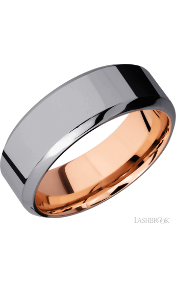 8 mm wide High Bevel Tantalum band featuring a 14K Rose Gold sleeve.