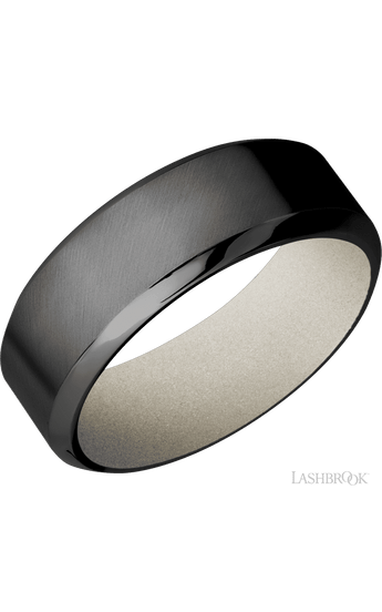 8 mm wide High Bevel Zirconium band featuring a Bright Nickel sleeve.