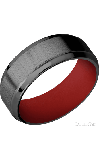 8 mm wide Stepped Bevel Zirconium band featuring a USMC Red sleeve.