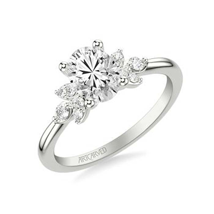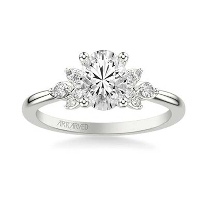 ArtCarved Oval Center Floral Diamond Engagement Ring Semi-Mounting with Side Petals in 14K White Gold