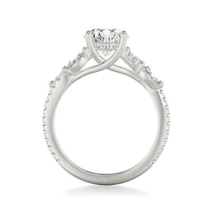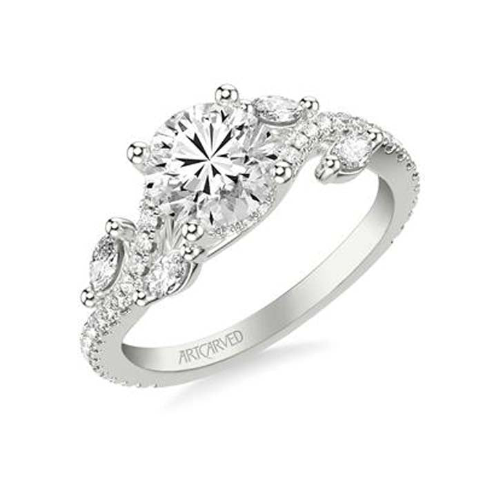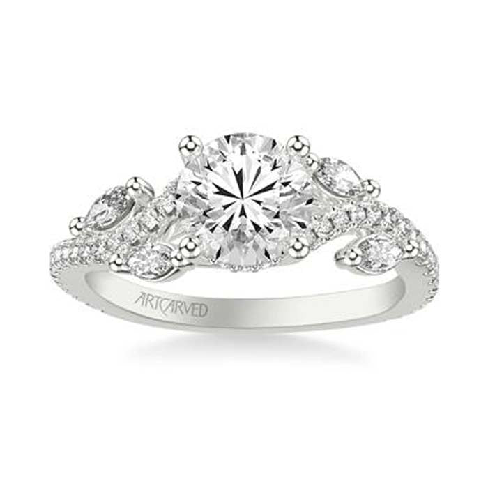 ArtCarved Round Center Floral Engagement Ring Semi-Mounting with Floating Marquise Diamond Petals in 14K White Gold