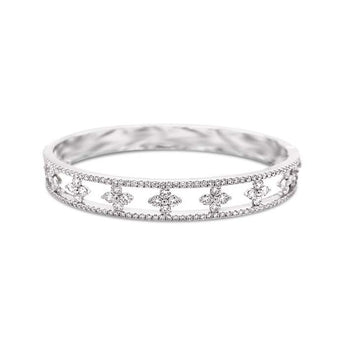 Charles Krypell Precious Pastel Diamond Clover Bangle Bracelet in 18K White Gold