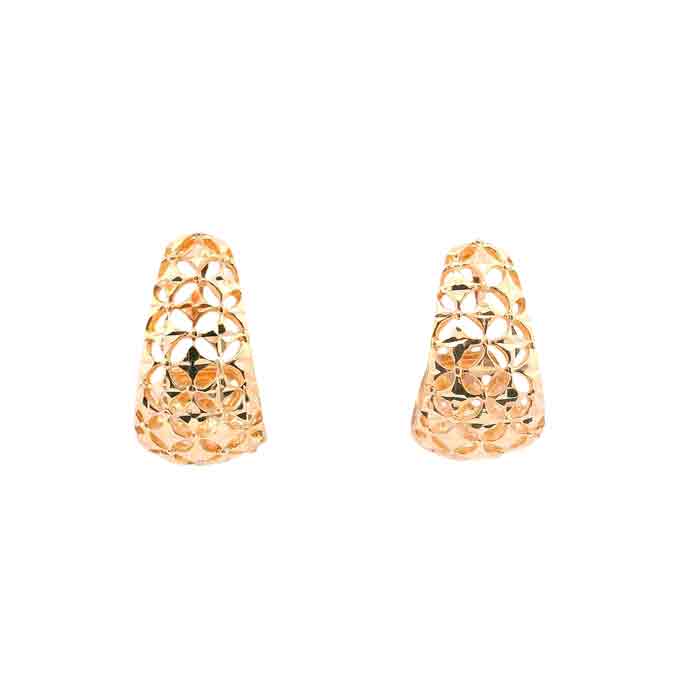 Estate Diamond-Cut Filigree J-Hoop Earrings in 14K Yellow Gold