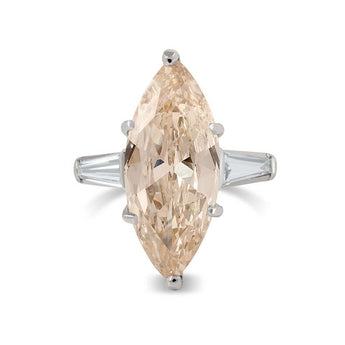 Center Diamond - Marquise Cut, approximately 3.80 carat total weight, VS1 clarity, Fancy Light Brown color
