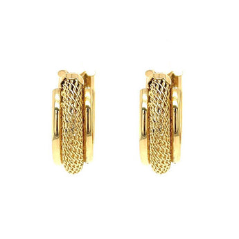 Estate Mesh Round Hoop Earrings in 14K Yellow Gold