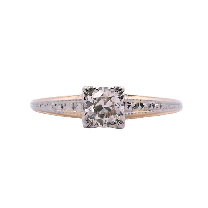 Estate Old European Cut Diamond Solitaire Engagement Ring in Platinum and 14K Yellow Gold